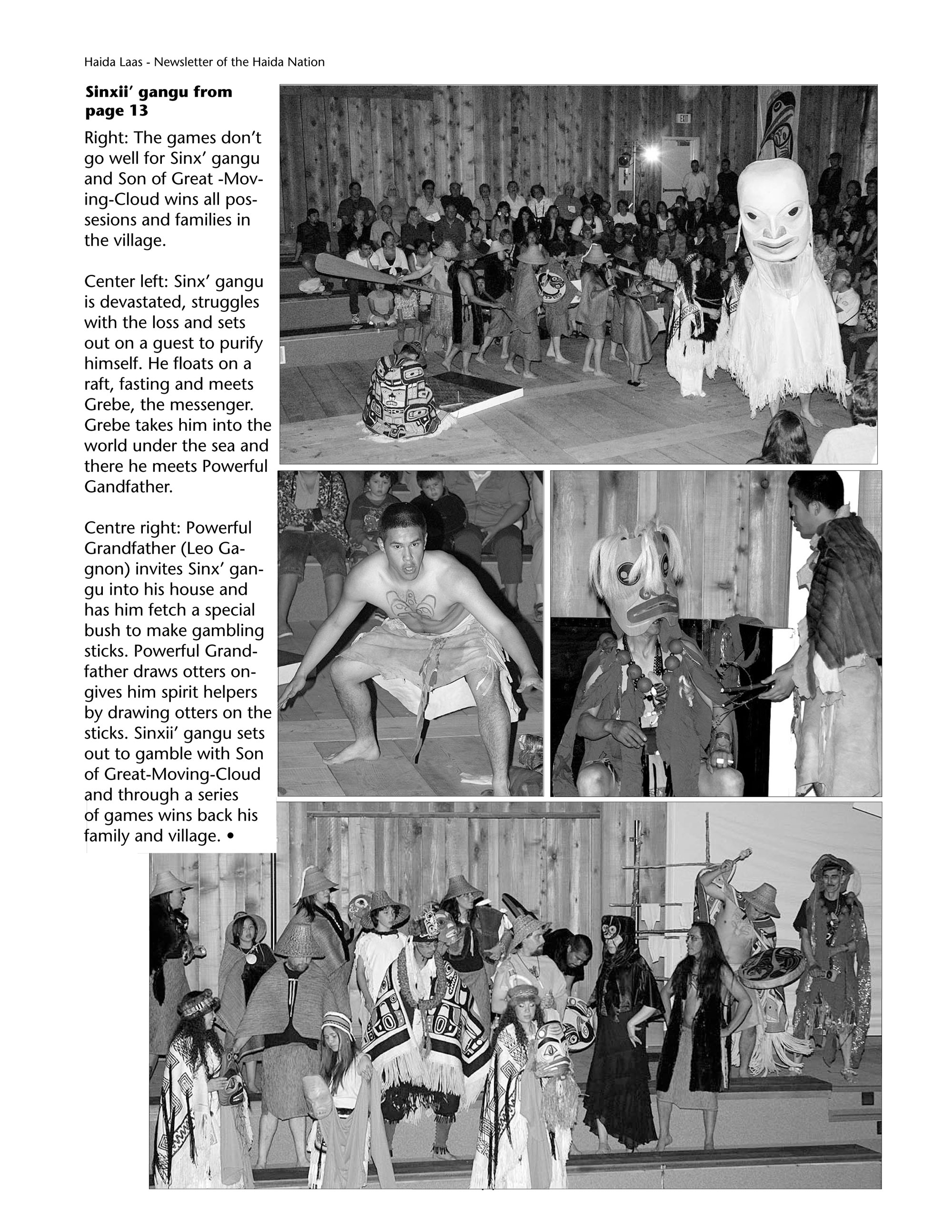 Sinxii’ gangu is the play that started it all for K’aalts’ida K’ah. Beginning with a big idea to put Haida storytelling on the stage, brothers Jaalen and Gwaai Edenshaw set to work scripting, art directing and executing a production with an all Haida cast supported by talented crew from the community.