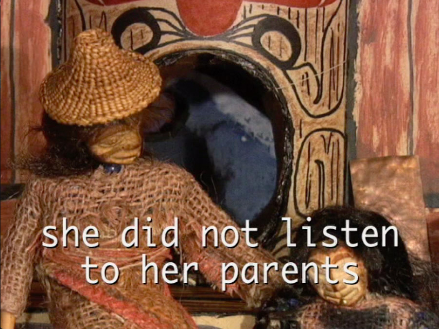 A scary monster that can take on human form, Yaanii K’uuka is a villanous woman who steals children who don’t behave and eats them. This Haida story, adapted in stop motion animation in 2008, tells of a young girl’s abduction by Yaanii K’uuka because she doesn’t respect her food and doesn’t behave.